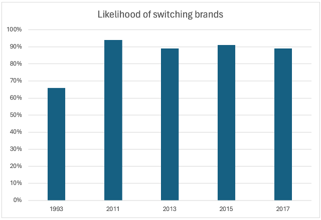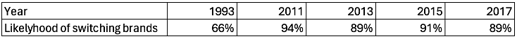 Figure 2: Consumers' likelihood to switch brands to one that is associated with a good cause