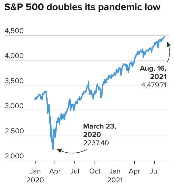 A third problem is that it is difficult to know when or how the market will react to the information (even if it is veridic and affects the security in a relevant way). Imagine that in 2019 you knew with certainty that a global pandemic would break out, millions would die, the retail and hospitality industries would completely shut down and people would be unable to go to the office. One would assume a prolonged recession accompanied by a long-lasting drawdown. Instead, the market reached all-time highs less than a year later, as seen on the chart below.