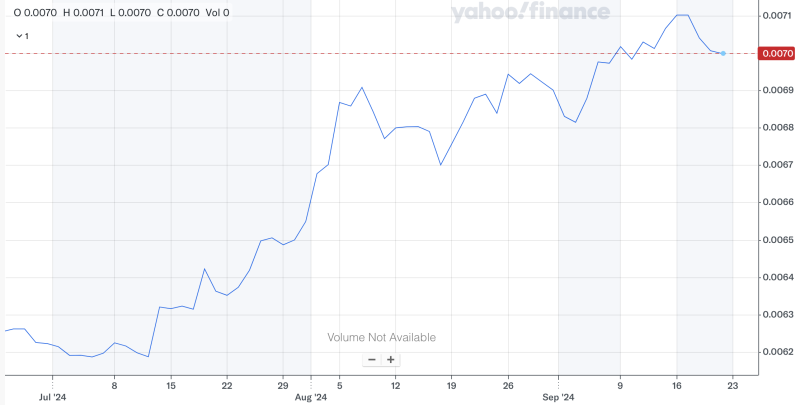 Figure 8: JPY/USD Exchange Rate Over the Last 3 Months (as of September 20, 2024)