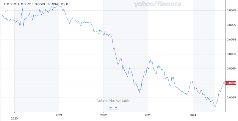 Figure 7: JPY/USD Exchange Rate Over the Last 5 Years (as of September 20, 2024)
