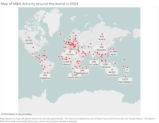 - Alimentation Couche Tard Inc’s acquisition of Seven & i Holdings co Ltd at a value of 38 billion USD.