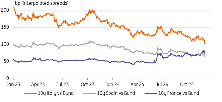 Figure 6: Government bond yield spreads (Italy, Spain, France vs Bund)