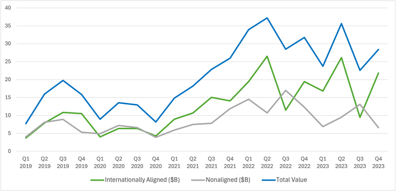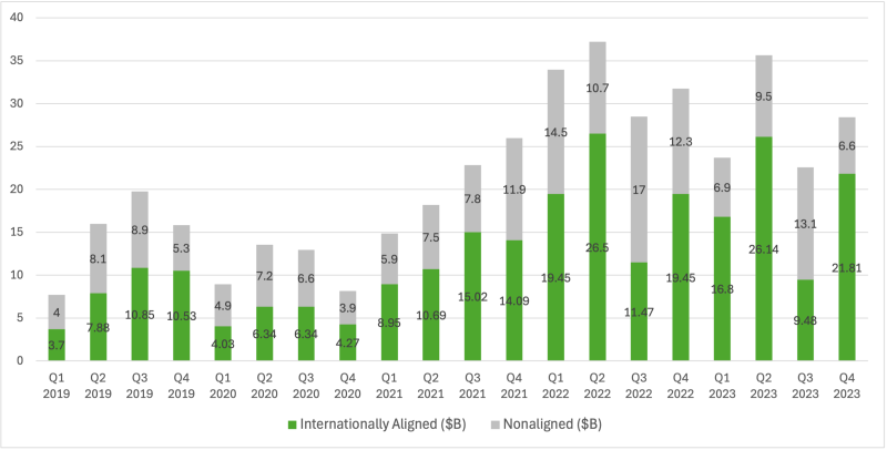 Figure 2: Internationally (Non)aligned Green Bond Issuance in China from 2019 to 2023
