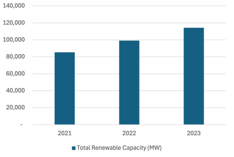 Figure 3: Total Renewable Energy Capacity in India from 2021 to 2023