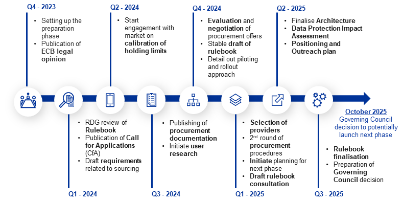 European Central Bank. (2024). Progress on the preparation phase of a digital euro - First progress report. European Central Bank. https://doi.org/10.2866/10580
