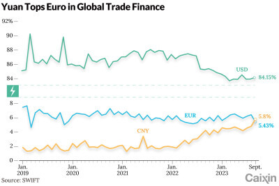 Chinese yuan edges out euro as Second-Most used currency in global trade finance. (2023, October 31). Caixin Global. https://www.caixinglobal.com/2023-10-31/chinese-yuan-edges-out-euro-as-second-most-used-currency-in-global-trade-finance-102122297.html